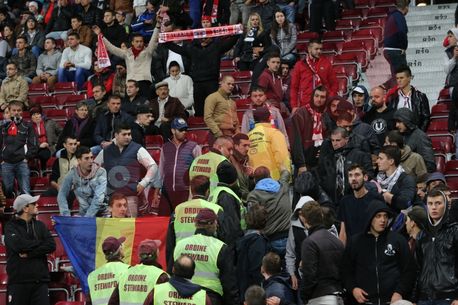 20:08 Corespondentul nostru, Vlad Măcicășan, ne informează că fanii lui U Cluj s-au alăturat celor veniți de la București și vor sta în aceeași zonă a stadionului Constantin Rădulescu. În plus, 100 de fani au aruncat cu fumigene în Piața Muzeului, dar jandarmii au intervenit prompt și i-au îndepărtat.
