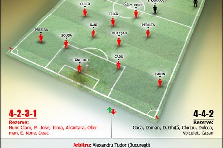 Asta până în minutul 27. Culio urcă pe partea dreaptă, centrează la 6 metri, iar Kone reia cu capul de lângă un adversar și balonul se oprește în plasa lui Boșneag. E 1-0 și echipa campioană se dezlănțuie. Insă Pereira îl face mare pe Boșneag, Trică nu nimerește poarta și Culio trage direct în brațele portarului.