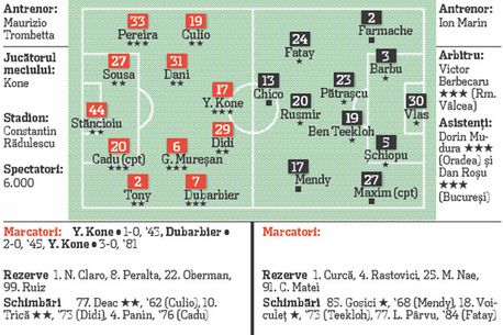 Cu o atitudine vizibil schimbată în bine față de precedentele confruntări din Liga I și împinși de la spate de suporteri ale căror fețe radiau de fericire, clujenii au arătat că nu vor să trăiască din amintiri. În joc era orgoliul lor de echipă învingătoare pe „Olimpico”, iar clujenii nu s-au făcut de râs și au pus la respect Farul încă din prima repriză, când Yssouf Kone și Dubarbier au vrut să amintescă faptul că și ei au făcut un meci mare la Roma și nu doar „vedeta” Culio. Constănțenii au părut că au luat drumul Ardealului doar cu scopul de a face tot posibilul pentru a nu fi umiliți. „Au învins Roma, noi ce putem face?” par să se fi întrebat constănțenii înainte de meci, cel puțin dacă ne luăm după jocul fără vlagă al elevilor lui Ion Marin. Kone a încheiat perfect o seară agreabilă pentru suporterii CFR-ului, iar clujenii se pot concentra la meciurile cu Steaua și Chelsea.
