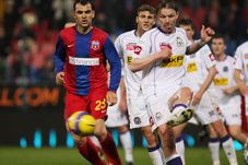Min.41 Fază construită frumos de steliști dar finalizarea lui Mirel Rădoi lasă din nou de dorit, șutul său lipsit de vlagă fiind prins fără probleme de portarul lui Poli