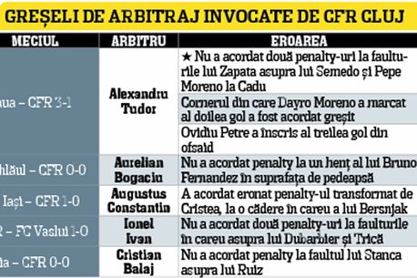 Totodată, spun cei de la CFR Cluj, Steaua a câștigat patru puncte cu ajutorul arbitrilor în partidele cu Unirea Urziceni și Universitatea Craiova, iar alte trei, de la meciul cu Rapid, le-a primit la masa verde în urma afacerii „Bricheta”. De asemenea, dinspre Gruia există suspiciuni cu privire la corectitudinea cu care FC Vaslui, Gloria Bistrița și Dacia Mioveni și-ar fi apărat șansele în fața Stelei.