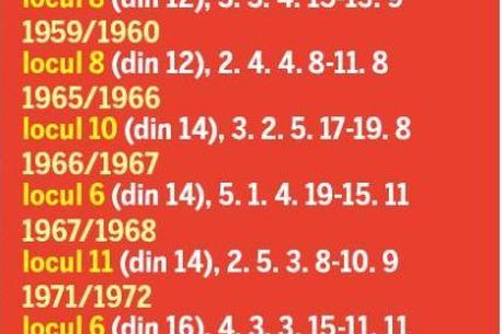 8), ’59-’60 (locul 8), ’65-’66 (locul 10), ’67-’68 (locul 11),