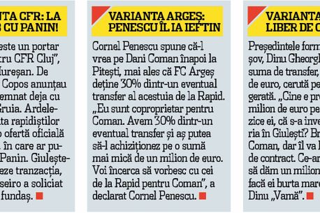 Șansele cele mai mari de a obține semnătura goalkeeperului le are CFR Cluj, grupare care și-a anunțat public interesul pentru Dani Coman. Și FC Argeș trage de rapidist, bazându-se pe faptul că deține 30 la sută din drepturile sale federative.