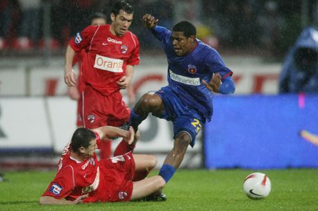Min.85 Dinamoviștii aruncă o minge lungă în atac, Bratu sprintează din spatele lui Mirel Rădoi, îl ajunge și îl depășește superb dar nu mai are suflu să centreze odată ajuns în careul "roș-albaștrilor"
