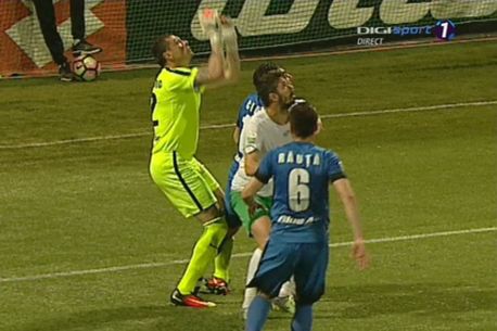 Min. 19 Grahovac este OUT! Portarul iese pe centrare, dar bate greșit pe piciorul stâng și își răsucește glezna. Caparco îi ia locul.