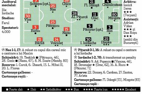 Farul a pierdut meciul de șase puncte cu Pandurii și se îndreaptă vertiginos spre liga a II-a. “Marinarii” nu au putut trece de un adversar bine organizat, singurele ocazii venind în urma fazelor fixe. Gorjenii au hărțuit în permanență apărarea constănțeană și prin succesul de ieri ies din zona minată