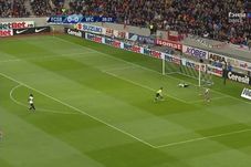 21:36 Rîmniceanu trăiește periculos pe Arena Națională nefiind protejat absolut deloc de fundașii din fața sa. Boldrin, unul dintre cei mai buni fotbaliști de pe teren, în această seară, pătrunde în careu, îi lasă mingea pe spate lui Ovidiu Popescu, iar șutul acestuia, atins și de Rîmniceanu, lovește bara și iese în corner.