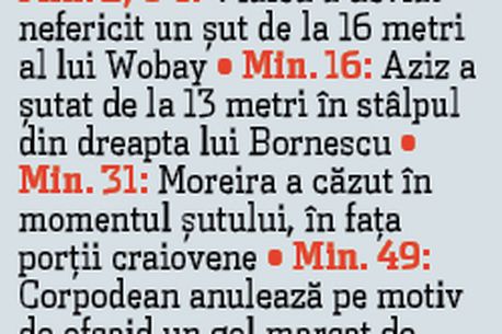 Între Napoli și Marinică există totuși o diferență. Cea dintre Serie A și fotbalul feminin. În timp ce alții își consumă momentele europene, Craiova adună puncte pentru o nouă viață. Una în care își închipuie că e din nou în luminile rampei. A dat lovitura și la Buzău, oraș pentru care aceleași lumini sunt pe care să se stingă. Buzăul trăiește ca efemeridele. O dată pe an se răscoală pentru a înjunghia Steaua, după care continuă suferința unei echipe construite din cioburile de orgoliu ale unor fotbaliști fără nume. Vădit superioară aseară, Craiova a refuzat tatonarea de început, i-a înfipt semeț pe Costea și Wobay în flancurile buzoienilor și a dat drumul atacurilor în serie. Rezultatele au apărut imediat, Wobay șutând pentru gol după primul corner al meciului.