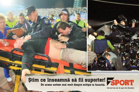 Toate aceste elemente aveau să creeze cadrul pentru incidentele de la pauză. Atunci, galeria lui Dinamo a fost evacuată după ce au avut loc ciocniri cu jandarmii, oamenii de ordine folosind spray lacrimogen pentru a calma spiritele. Nici fanii locali nu s-au lăsat mai prejos și o parte dintre aceștia au fost dați afară din stadion. În urma conflictelor au fost rănite șapte persoane, dintre care doi jandarmi și cinci suporteri ai celor două formații. Unul dintre fanii dinamoviști, aflat în stare gravă, a primit primul ajutor din partea medicilor aflați la stadion.