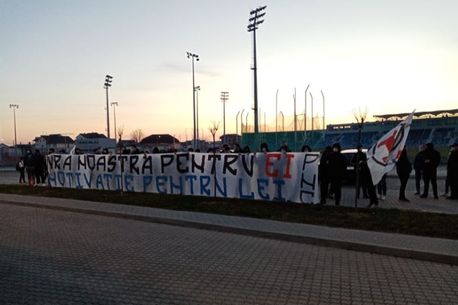 Aceştia au ţinut să-i încurajeze pe jucătorii pregătiţi de Dragoş Bon înaintea duelului cu marea rivală, afişând şi un mesaj: „Ura noastră pentru ei (dinamovişti, n.r.), motivaţie pentru lei”. Ultima dată când fanii olteni recurseseră la o astfel de acţiune de susţinere a fost înaintea meciului cu FCSB, pierdut însă de alb-albaştri cu 2-0, în decembrie anul trecut.