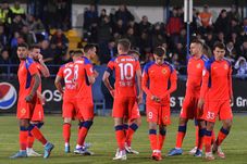După ce Florin Tănase a transformat lovitura de la 11 metri, jucătorii lui FCSB au mers și l-au încurajat și pe Florinel Coman.