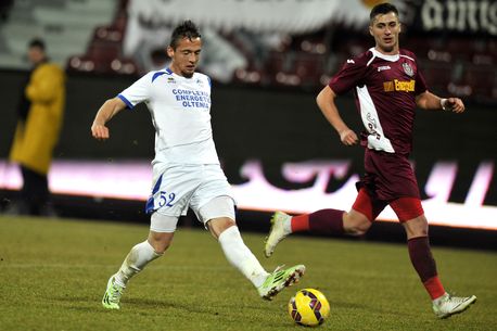 Larie (foto, alături de Shalaj de la Pandurii) a fost eroul CFR-ului în partida cu Astra, câștigată de clujeni, scor 1-0.