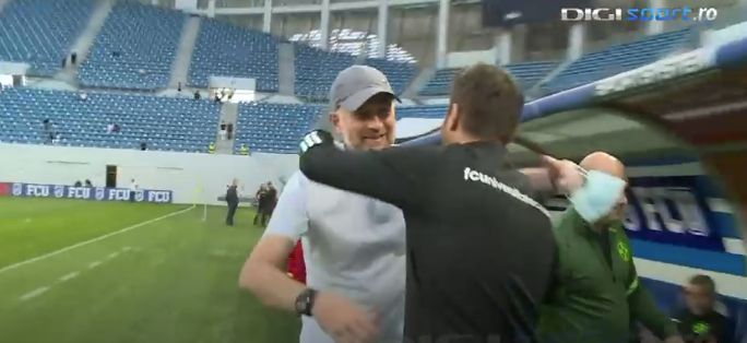 Cei trei s-au îmbrățișat și au discutat bine dispuși pe marginea mai multor subiecte, inclusiv despre starea gazonului de pe „Ion Oblemenco” și forma fizică bună a lui Constantin Budescu.