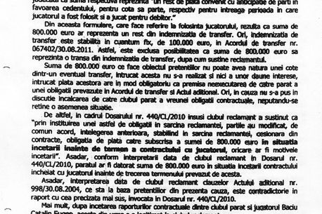 La 30 de zile de la plecarea lui Baciu, FCM Bacău a somat Steaua să plătească 800.000 de euro, plus 1% pe zi penalizări. Cum roș-albaștrii au refuzat, s-a ajuns la Camera de Soluționare a Litigiilor de la FRF, care marți a dat verdictul. Memoriul Bacăului a fost respins, comisia condusă de Gabriel Manu (într-o componență pară, șase membri!!!) considerând că „acea clauză ar fi fost activată doar în situația încetării înainte de termen a contractului cu jucătorul”, adică până în 2009. Așadar, conform deciziei de marți, Steaua l-a plătit degeaba pe Baciu timp de doi ani!