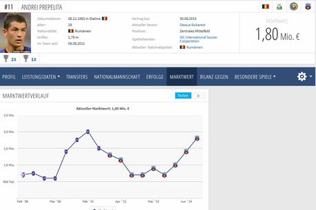 • Andrei Prepeliță (29 de ani) este marea revelație a Stelei în 2014. Mijlocașul a devenit titular incontestabil atât în formația lui Reghecampf, cât și a lui Gâlcă, iar evoluțiile excelente i-au crescut cota de piață la 1,8 milioane de euro.