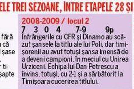 ultimele trei sezoane, în ultimele șapte etape, Timișoara a obținut