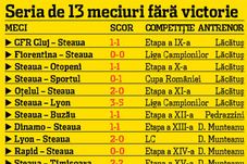 Octombrie și noiembrie au trecut fără ca Steaua să câștige vreun meci, ultima victorie a roș-albaștrilor fiind cea cu Gaz Metan, de pe 21 septembrie, 4-0, în etapa a VIII-a. De atunci au trecut 13 partide, opt etape și mai bine de două luni în care roș-albaștrii nu au simțit gustul succesului.
