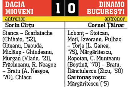 De partea cealaltă, Dacia lui Sorin Cîrțu a așteptat doar momentul prielnic pentru a da lovitura. Acesta a venit imediat după pauză, atunci când Chihaia l-a păcălit pe Moți și a scos un penalty transformat de Robert Neagoe. Surprinși de cursul neașteptat al jocului, alb-roșiii și-au pierdut luciditatea, trecându-și un mare zero în dreptul ocaziilor și irosind un obiectiv important.