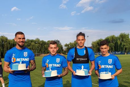 Antrenamentul din seara aceasta al Universităţii Craiova a debutat cu o invazie de torturi, pentru cei patru sărbătoriţi din lotul alb-albastru. Doi dintre cei mai importanţi jucători ai echipei, Elvir Koljic şi Alexandru Cicâldău, sunt născuţi în aceeaşi zi, bosniacul împlinind azi 26 de ani, iar „Cic”, 24 de ani.