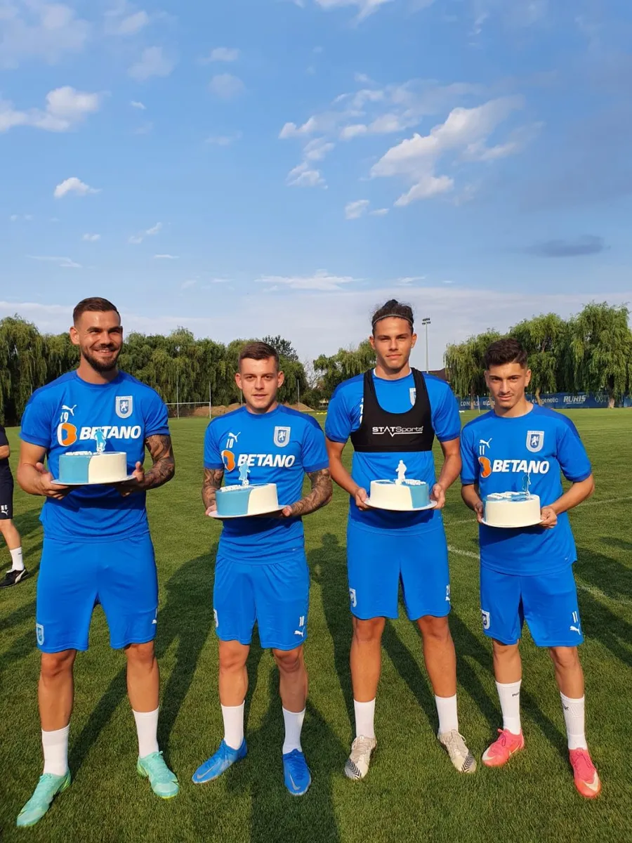 Alături de cele două vedete ale grupării din Bănie au fost sărbătoriţi şi puştii Alberto Călin, la cei 16 ani împliniţi, şi Atanas Trică, nepotul lui Ilie Balaci celebrând cei 17 ani vineri, când oltenii vor pleca spre Capitală, pentru Supercupă.