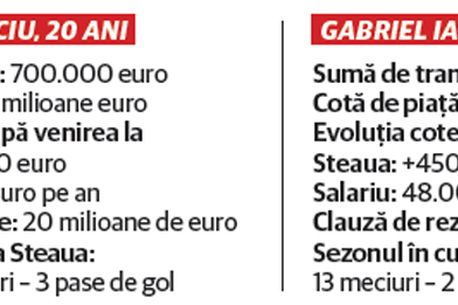 Steaua are la dispoziție în acest moment doi dintre tinerii despre care specialiștii din fotbal susțin că pot deveni jucători importanți ai României. Gigi Becali l-a cumpărat pe Gabi Iancu în iarna trecută, de la Viitorul Constanța, și tot atunci s-a înțeles cu Nicușor Stanciu, de la Vaslui, pentru un contract cu dată de start vara lui 2013. Văzuți inițial în competiție directă pentru un post de titular, cei doi au avut traiectorii diferite. Stanciu este titular de bază în „11″-le lui Reghecampf, în timp ce Iancu prinde rar lotul și impresarii săi vorbesc despre o despărțire de echipa campioană. Cariera de până acum a celor doi este un exemplu clar al modului în care alegerile extrafotbal pot influența cariera jucătorilor.