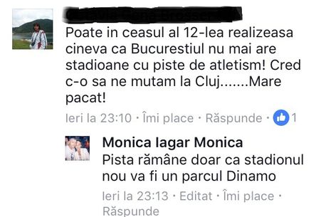 Monica Iagăr, președinta CS Dinamo, a punctat același lucru, într-o postare pe pagina ei de facebook, prin care răspundea unei „interpelări” a oamenilor din atletism, contrariați de soarta pistei de atletism de la Dinamo (vezi jos).
