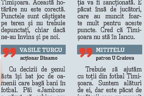 De azi, Poli va număra doar șapte puncte în clasament, fiind mai aproape de retrogradare decât de podium. Practic, punctele câștigate la Buzău și acasă, cu Rapid, vor fi anulate. Jucătorii lui Uhrin și chiar tehnicianul pricep într-o foarte mică măsură ceea ce se întâmplă. Ei nu au putut fi contactați ieri pentru a-și exprima opinia în acest caz, deoarece, din dorința lui Marian Iancu, echipa se află în silenzio stampa, iar toate declarațiile de presă au fost suspendate. Mai puțin cele ale președintelui, foarte „ocupat” în acest sens de-a lungul zilei de ieri.