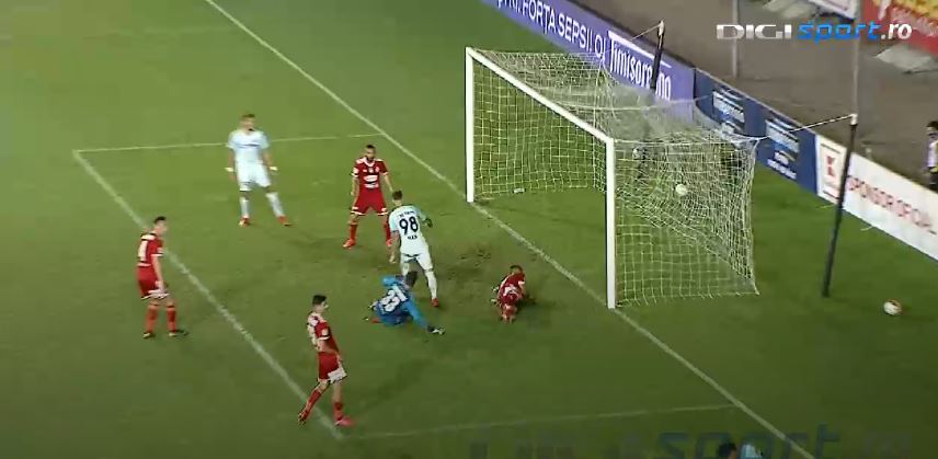 FCSB a reușit să deschidă scorul pe tabelă, după ce Florinel Coman a trimis în fața porții, unde Dennis Man i-a păcălit pe Dimitrov și portarul Niczuly, apoi a împins mingea în poartă fără probleme!