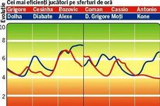 sunt notați cei mai eficienți jucători ai fiecărei echipe în