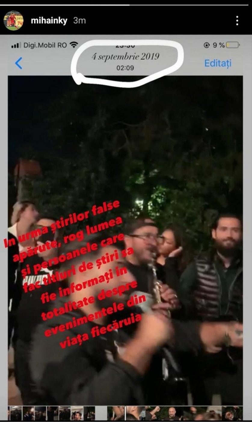 Ulterior, atât iubita fotbalistului, cât și Mihai Neicuțescu au negat că imaginile ar fi de anul acesta. Cei doi au postat câte o imagine pe InstaStory în care în dreptul clipului respectiv apare data de 4 septembrie 2019. Problema este că pe InstaStory e destul de ușor să modifici data, iar în subsolul articolului aveți dovada.