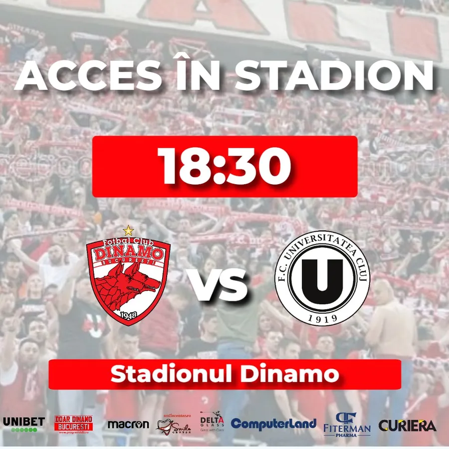 Dinamo nu vrea ca startul meciului cu U Cluj să fie întârziat, așa cum s-a întâmplat la finala FC Liverpool – Real Madrid, astfel că deschide porțile stadionului din Șos. Ștefan cel Mare încă de la ora 18:30.