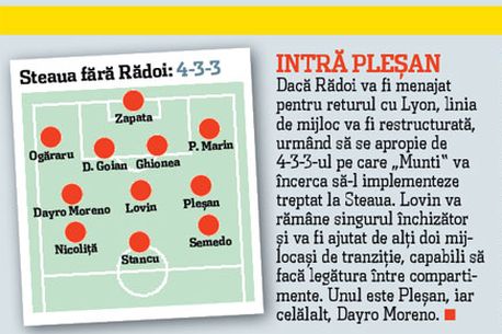 4-2-3-1 sau 4-3-3? Sistemul de joc pe care va miza Steaua mâine depinde de un singur factor, și anume felul în care decurge recuperarea lui Rădoi.
