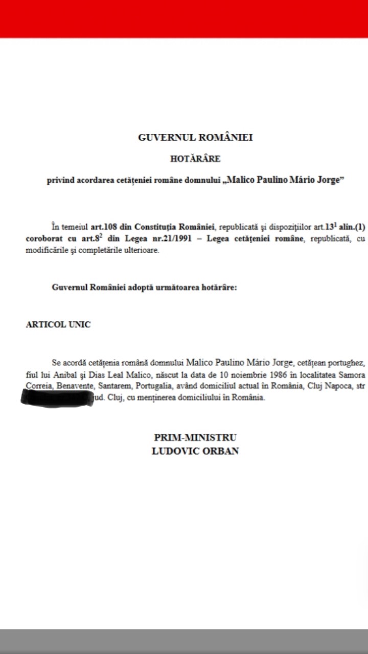„Se acordă cetățenia română domnului Malico Paulino Mario Jorge, cetățean portughez, fiul lui Anibal și Dias Leal Malico, născut la data de 10 noiembrie 1986″, scrie în hotărârea adoptată astăzi de Guvernul României. „Am aflat că s-a aprobat cetățenia. Aștept să fiu chemat să fac jurământul. Pentru mine, în primul rând, a contat foarte mult această decizie. Eu o să rămân în România toată viața, în Cluj. O să fie o mândrie enormă dacă o să fiu chemat la națională. Eu am vrut de mai mult timp, dar nu depindea numai de mine. A început deja al 10-lea sezon aici, am jucat mult timp aici, mi-am făcut familie și a fost un motiv pentru care nu am mai vrut să plec de la CFR. Sunt foarte fericit”, a spus Camora, la Look Sport.