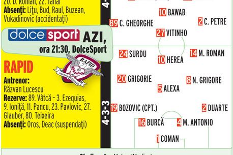 RAPID: Coman – Rui Duarte, Marcos Antonio, Burcă, Bozovic – Grigore, Alexa, Grigorie – Roman, Herea, Surdu
