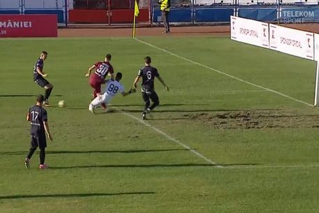Momentul în care Tudorie a fost accidentat de portarul Horațiu Moldovan. Captură Telekom Sport