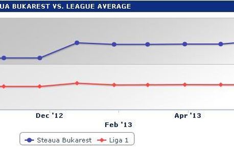Concret: dacă în urmă cu un an de zile media cotelor steliștilor era dublă față de media cotelor din Liga 1 (1.081.896 euro/491.846 euro – media cotelor steliștilor/media cotelor tuturor jucătorilor din Liga 1), acum diferența este de aproape trei ori mai mare. Media cotelor steliștilor a ajuns, la 1 iulie 2013, la 1.603.846, față de 558.149 de mii de euro, media cotelor jucătorilor din Liga 1.