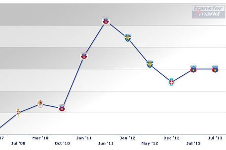Chiar și așa, atacantul de 28 de ani e departe de vârful atins în 2011, când era cotat la 1.3 milioane de euro.
