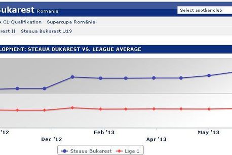 Steaua simte din plin efectul apropierii grupelor Ligii. Forma excelentă traversată de echipa lui Reghecampf se oglindește și în cota jucătorilor, care au ajuns la un nivel incredibil pentru Liga 1. Cea mai bine cotată echipă din România, Steaua și-a upgradat "nivelul" și a ajuns să coste aproape 45 de milioane de euro, cu mult peste celelalte rivale.