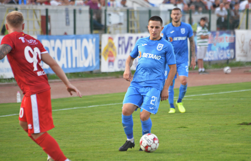 Antoni Ivanov (D), de la CS U Craiova, suteaza in timpul meciului de fotbal contra echipei FC Botosani din etapa a VI-a a Ligii 1, disputat pe stadionul Municipal din Botosani, duminica, 18 august 2019. IONUT TABULTOC / MEDIAFAX FOTO