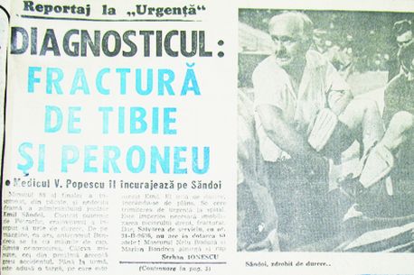 Acum antrenor la CS U Craiova, Săndoi se confruntă din nou cu un fault similar. Doar că acum își vede jucătorul, pe Nicușor Bancu, în vârstă de doar 21 de ani, cum merge în cârje și așteaptă cu înfrigurare verdictul medicilor în privința recuperării. De cealaltă parte, Alin Șeroni, fotbalistul Viitorului care l-a accidentat grav pe Bancu, așteaptă înfrigurat să fie introdus pe teren, în meciul cu Brașov, din etapa a 16-a Comisia de Recurs i-a redus pedeapsa: în loc să stea 16 etape, a stat doar una.