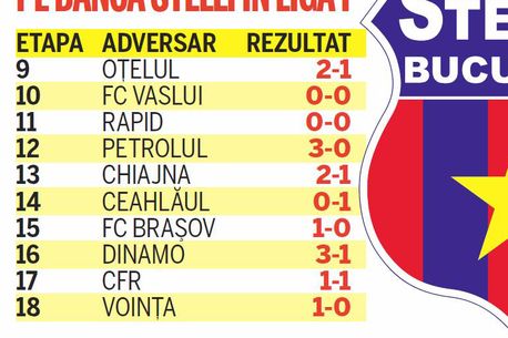24 de puncte a obținut Steaua în Liga I cu Ilie Stan pe bancă în 10 etape