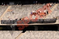 Meciul a început într-o liniște totală, fanii afișând și câteva bannere. Cele mai multe îl vizează pe Florian Walter. „Mai mari ai orașului dați dovadă de caracter! Scăpați-ne de Gunoier”, „Supunere? Niciodată!”, „Walter ia-l și pe Mărginean că-ți dăm țuică și ciolan”, „De un an ne ții în minciună, dar sperăm să te întorci la pușcărie, în cel mult o lună”, au fost câteva dintre afișe.
