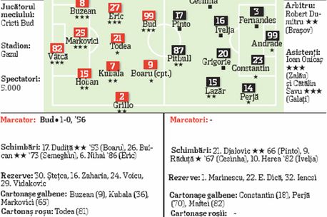 Maftei a văzut în partida de la Mediaș cel de-al nouălea cartonaș galben al sezonului și va fi suspendat pentru meciul cu Otopeniul. J.P. Andrade rămâne în continuare incert, în timp ce Mardare l-a copiat parcă pe Nicolae Grigore în privința accidentării. Fostul vasluian „s-a rupt” tot la antrenament și tot înaintea unui meci din deplasare. „E destul de urât, sper să nu lipsesc foarte mult. Nu am mai avut accidentări serioase până acum. E ghinion curat”, a spus Mardare, care va afla astăzi cât timp va sta în afara gazonului.