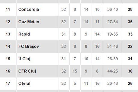 20:23 Fără o importanță prea mare pentru CSU Craiova, jocul din această seară are o miză uriașă pentru giuleșteni. Rapidul vrea să continue forma bună din ultimele meciuri cu o victorie care ar aduce clubul mai aproape de atingerea obiectivului de a rămâne pe prima scenă a fotbalului românesc. Iată cum arată clasamentul Ligii 1 în acest moment, în zona din care se chinuie Rapidul să iasă: