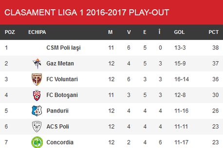 Scăpate de emoțiile retrogradării, cele două grupări din nordul țării joacă pentru palmares în acest final de sezon. Oaspeții de la Iași sunt lideri în play-out, cu trei jocuri rămase de disputat, având un punct avans față de Gaz Metan Mediaș, respectiv două față de FC Voluntari. Trupa antrenată de Leo Grozav e prima deasupra „Triunghiului Bermudelor” format din Concordia Chiajna, Pandurii Tg. Jiu și ACS Poli Timișoara.