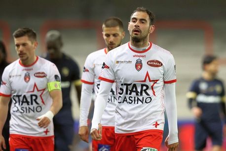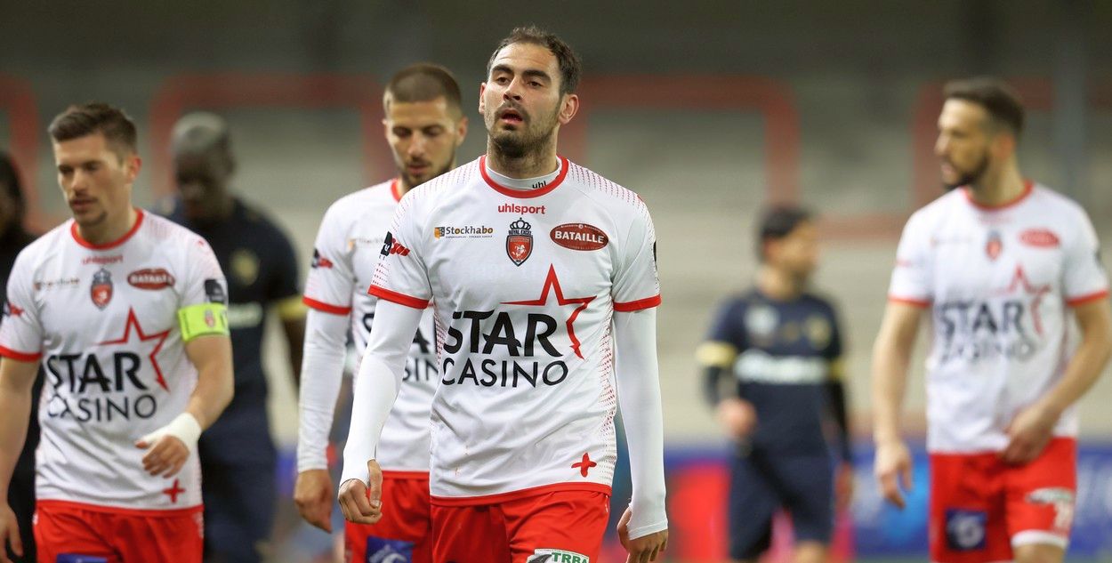 Mouscron’s Benjamin Van Durmen looks dejected during a soccer match between Royal Excel Mouscron and Royal Antwerp FC, Monday 12 April 2021 in Mouscron, on day 33 of the ‘Jupiler Pro League’ first division of the Belgian championship.