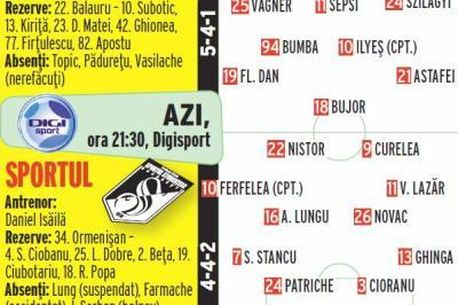 Sportul: Lungu – Stancu, Patriche, Cioranu, Ghinga – Ferfelea, Novac, Lazăr, Beța – Nistor, Dobre