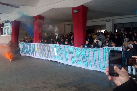 Fanii au scandat, au aprins torțe și fumigene și au afișat mesajul „Craiova vrea campionatul!”