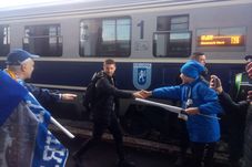Câteva sute de suporteri ai Universității Craiova i-au petrecut, astăzi la prânz, pe Devis Mangia și jucătorii săi, în gara din Bănie, la plecarea cu trenul spre București, unde, duminică seara, alb-albaștrii susțin derby-ul cu FCSB, în penultima etapă a sezonului regular al Ligii 1 Betano.