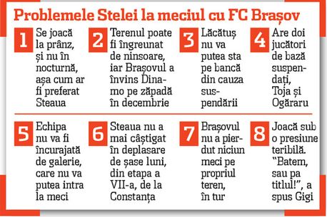Lăcătuș și Pedrazzini au insistat în această săptămână pe latura tactică a pregătirii meciului de la Brașov. Ambii tehnicieni știu foarte bine cât de greu e să dai gol Brașovului pe teren propriu. Cunosc însă și faptul că echipa lui Lucescu e periculoasă la fazele fixe.
